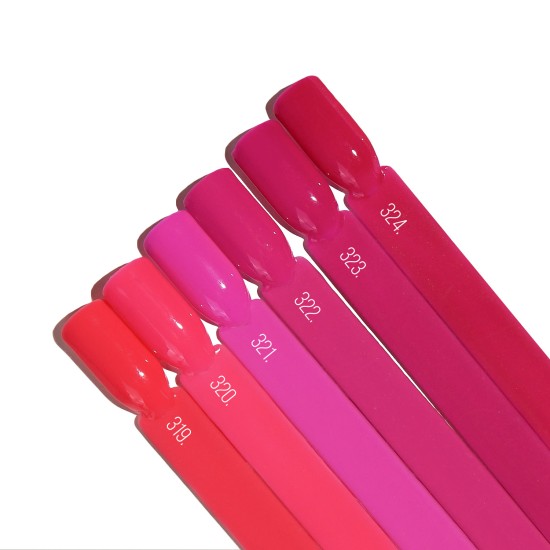 I colori dal 319 al 324 offrono un’armonia perfetta del rosa in tutte le sue sfaccettature. Perfetti per lavori da salone eleganti, look estivi vivaci o per dare un tocco di energia nelle giornate più grigie.